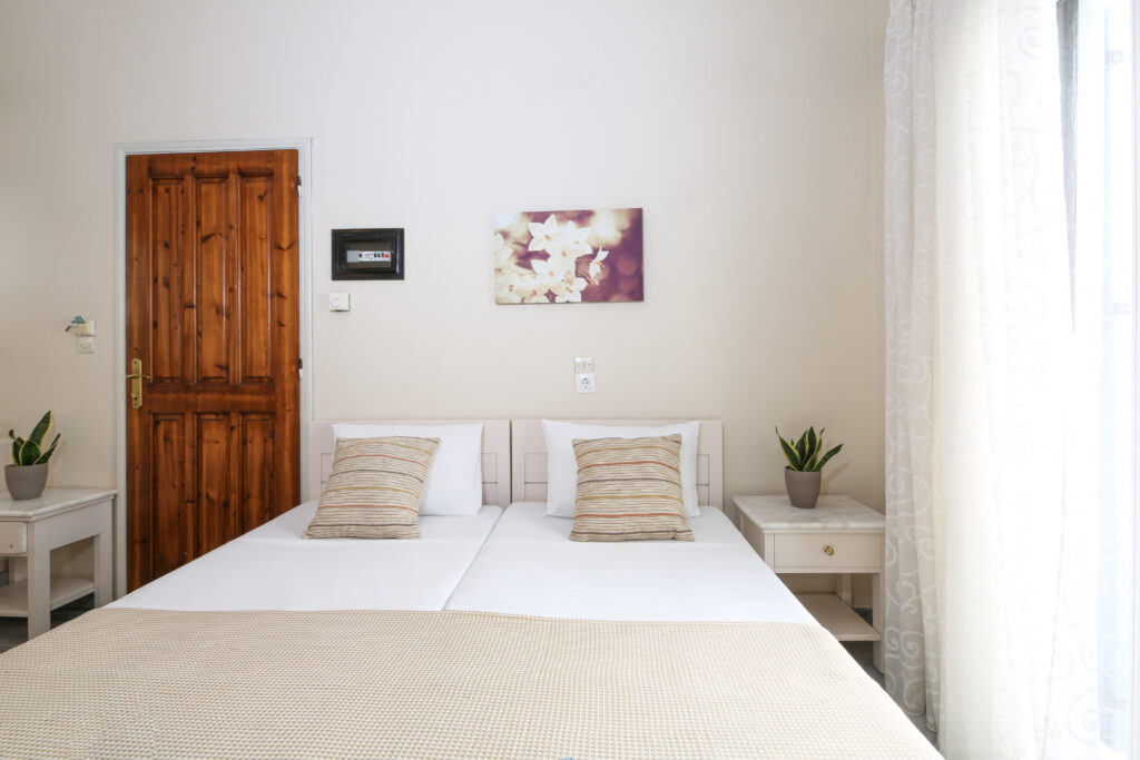 Απολαύστε τη διαμονή σας σε ένα δίκλινο δωμάτιο που συνδυάζει άνεση, στυλ και νησιώτικη ατμόσφαιρα